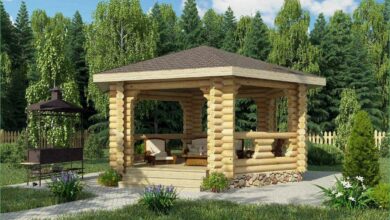 - Беседки: классический вариант деревянных навесов, которые отлично вписываются в любой стиль и добавляют шарма вашему участку.